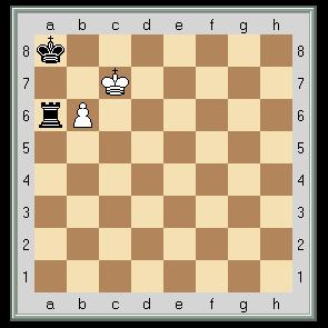 A példa a gyalogátváltozás motívumát mutatja be. Világosnak komoly anyagi hátránya van, mégis nyerhet. Hogyan?